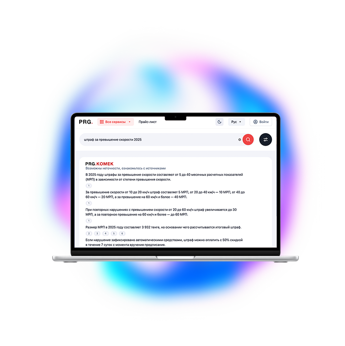 Ответ формируется исключительно на основе законодательной базы Республики Казахстан: нормативных правовых актов, проектов документов, официальных разъяснений госорганов и другой достоверной информации. Все ответы сопровождаются ссылками на документы базы PRG.